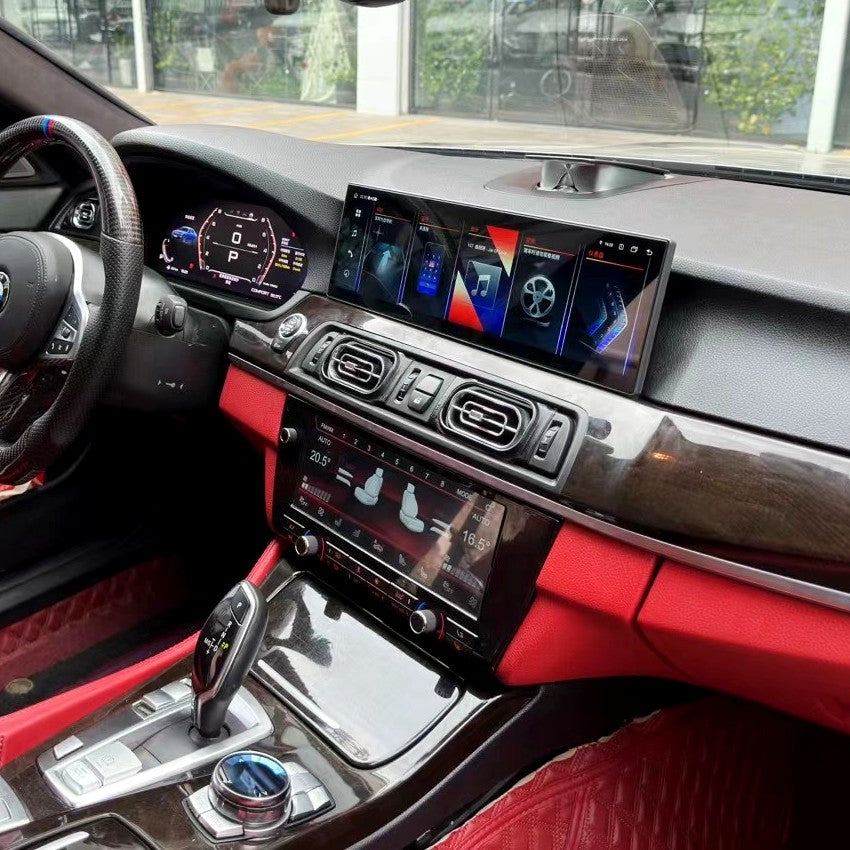 Upgrade your BMW 5 Series F10/F11 with this advanced 14.9" Android touchscreen system. Designed for seamless dashboard integration, it brings wireless CarPlay, Android Auto, and modern connectivity to your classic BMW interior while maintaining an OEM-quality appearance.